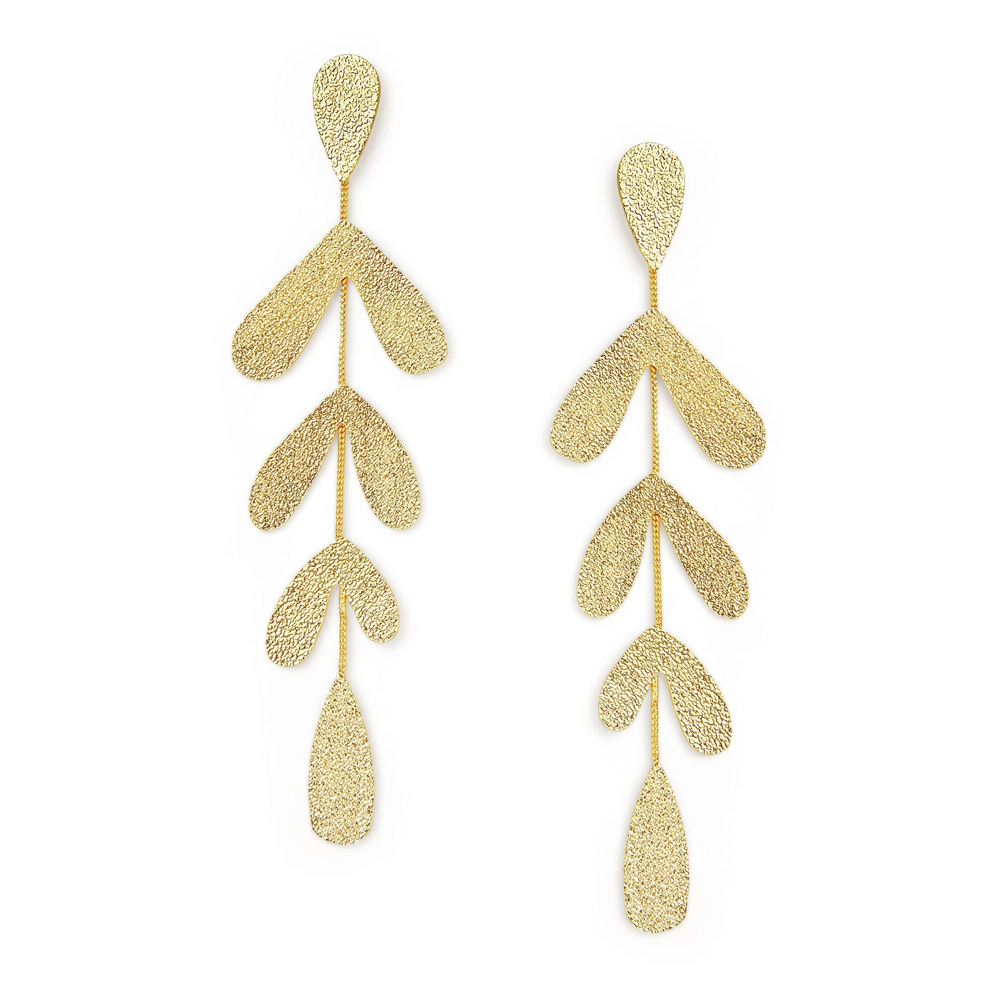 Make a bold yet refined statement with these intricately crafted earrings, featuring cascading leaves that exude sophistication and nature’s grace. Their striking movement and light-catching design effortlessly balance elegance and drama, adding a touch of glamour to any ensemble.