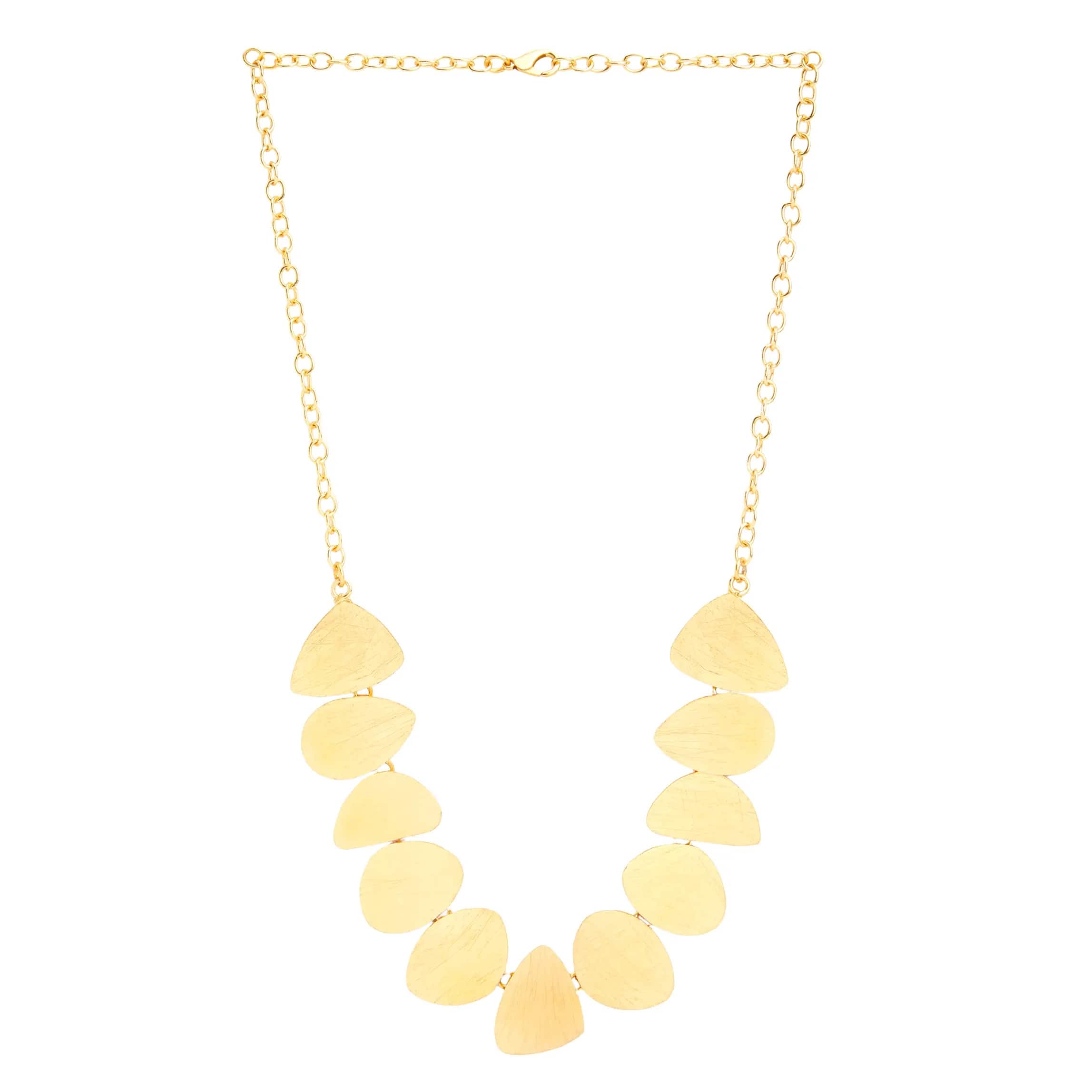Bold and contemporary, this chain features sleek leaf gold shaped links seamlessly connected for a striking and sophisticated design. The polished surfaces catch the light beautifully, creating a dynamic interplay of shine and structure. Perfect for making a confident statement, this versatile piece exudes modern elegance and effortlessly elevates any look, whether worn solo or layered. A true embodiment of strength and refined style.